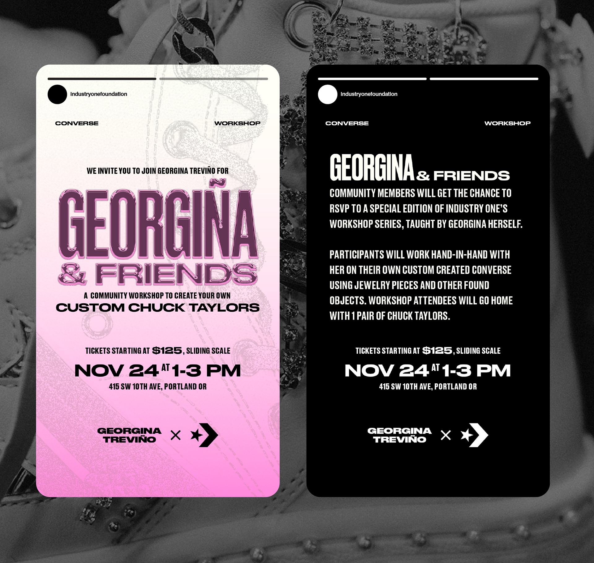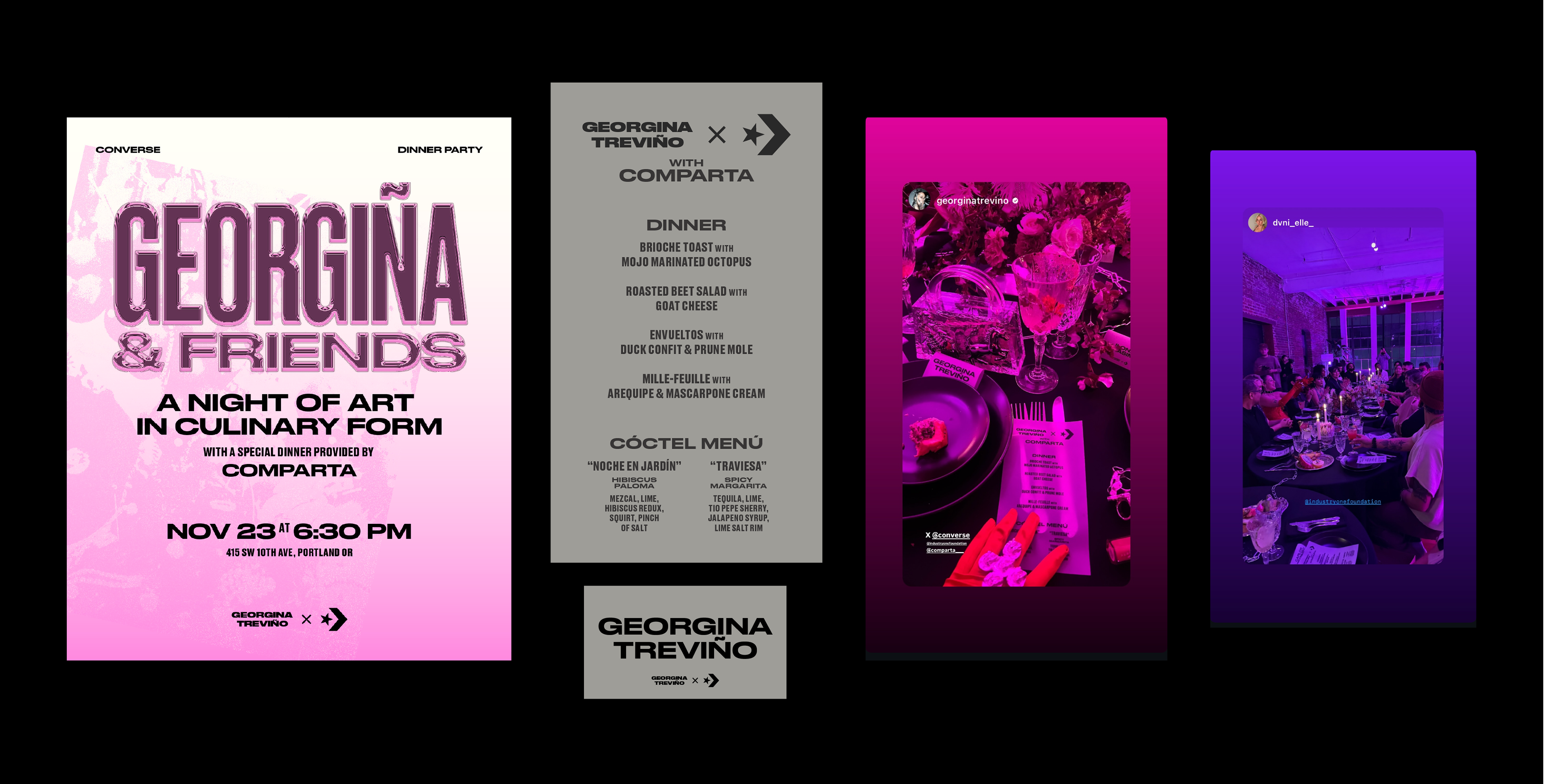 After a successful gallery showcase for Atrefactos Alterados, Georgina wanted to find a way to connect with the local, Portland, artist community. To support her initiative, we helped her collaborate with Converse to host a weekend of events, Georgina & Friends, which included a workshop, dinner, and after party.