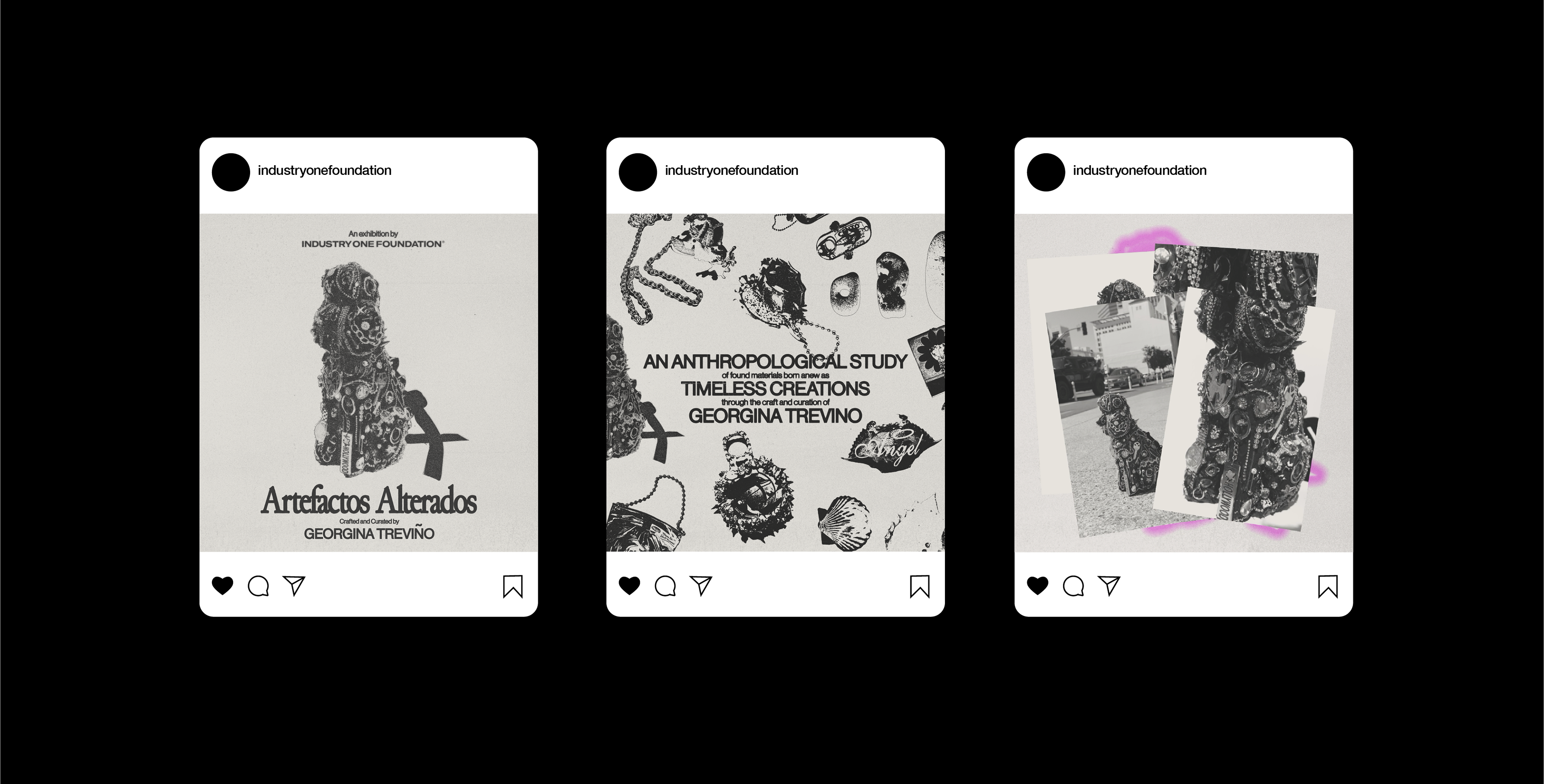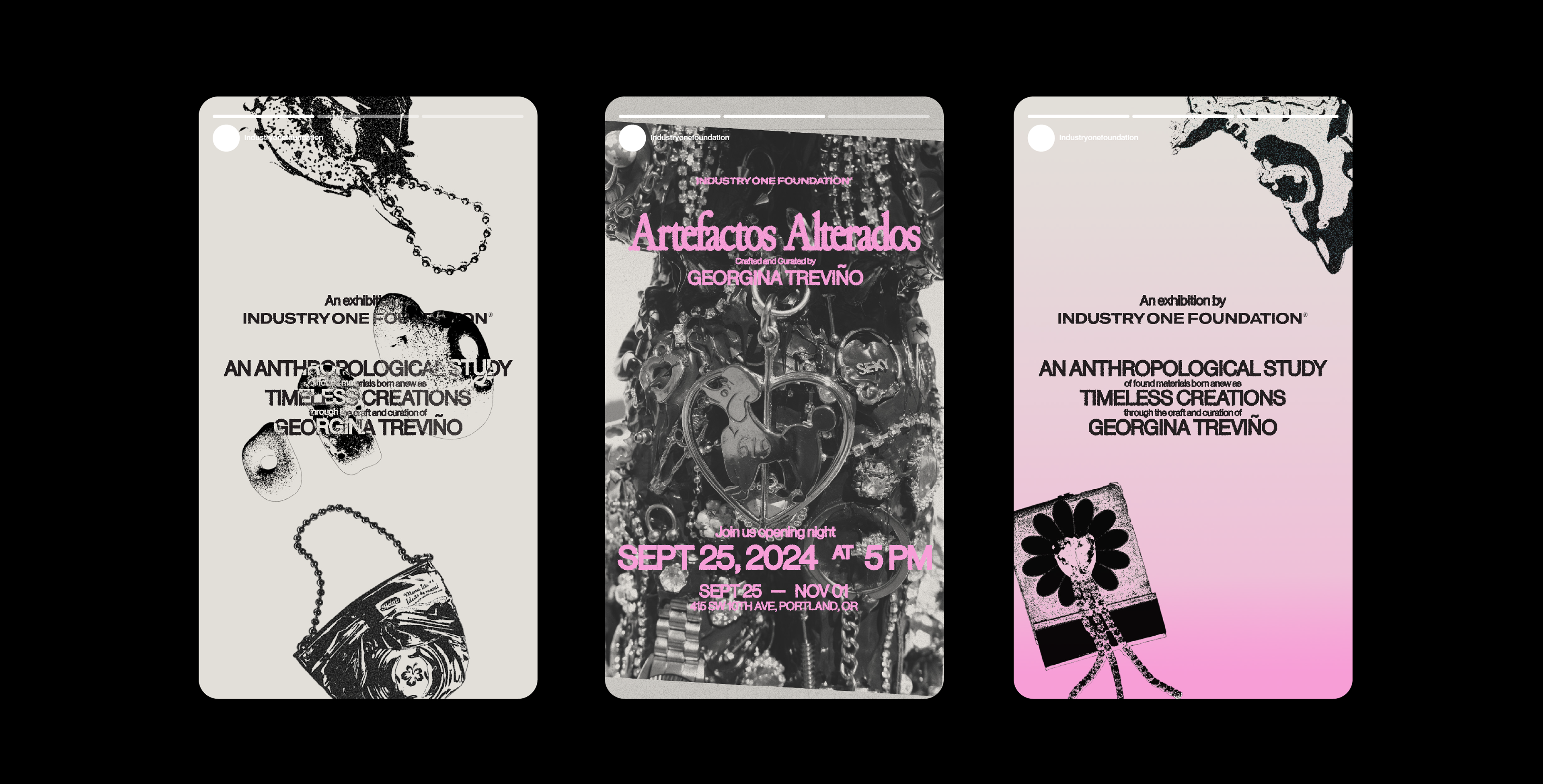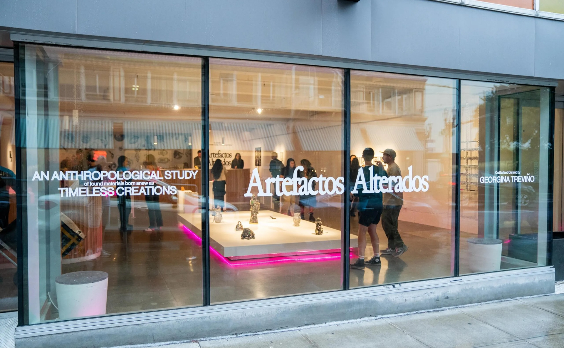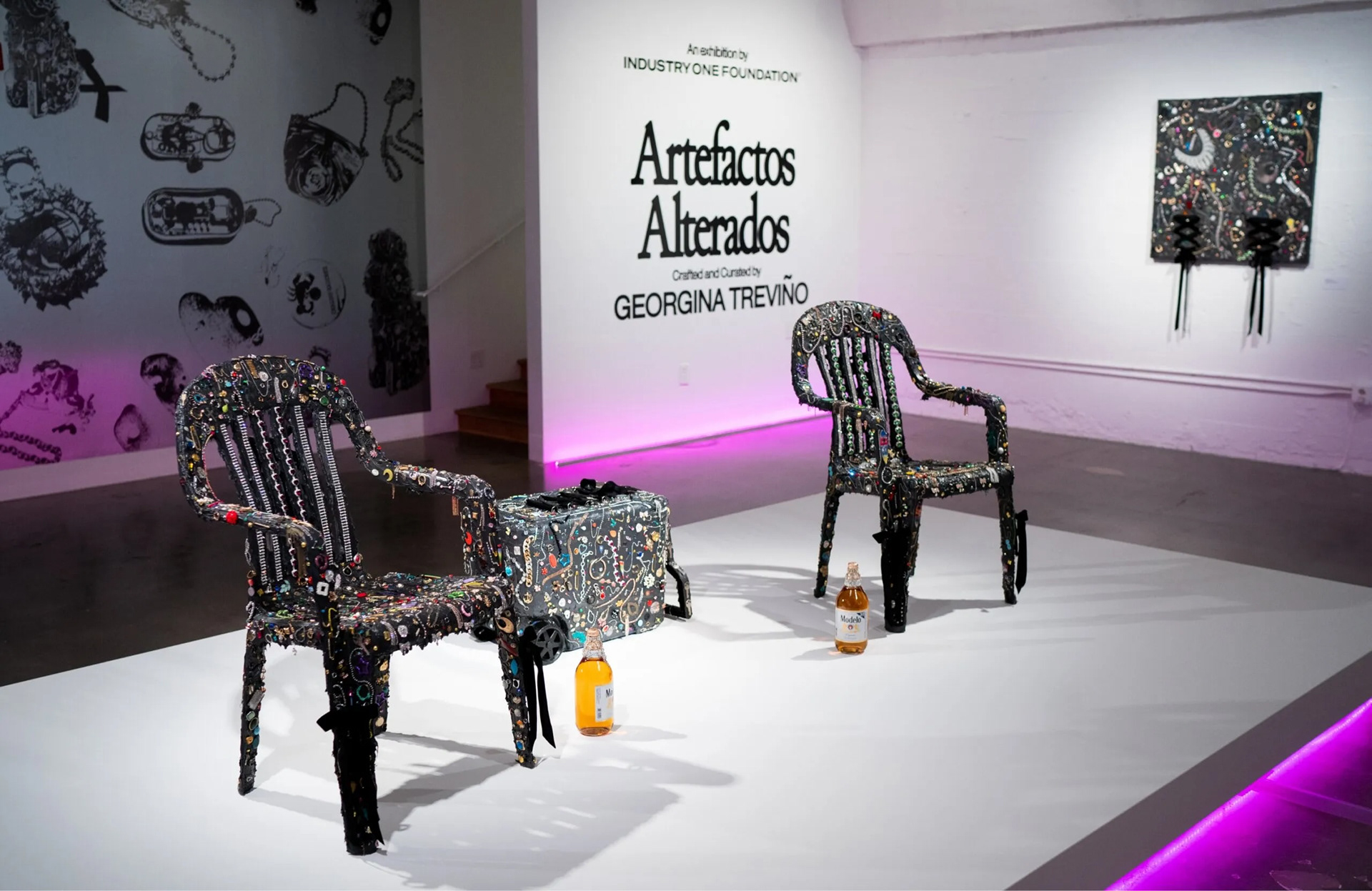 Artefactos Alterados is an anthropological study of found materials, reborn as timeless creations through the craft and curation of Georgina Treviño. For this show, I aimed to elevate ordinary artifacts from the ’90s, Y2K era, and Mexican culture through anthropological display. I used lighting, color, and textures within the gallery space to reflect the jewelry being exhibited back into the environment.