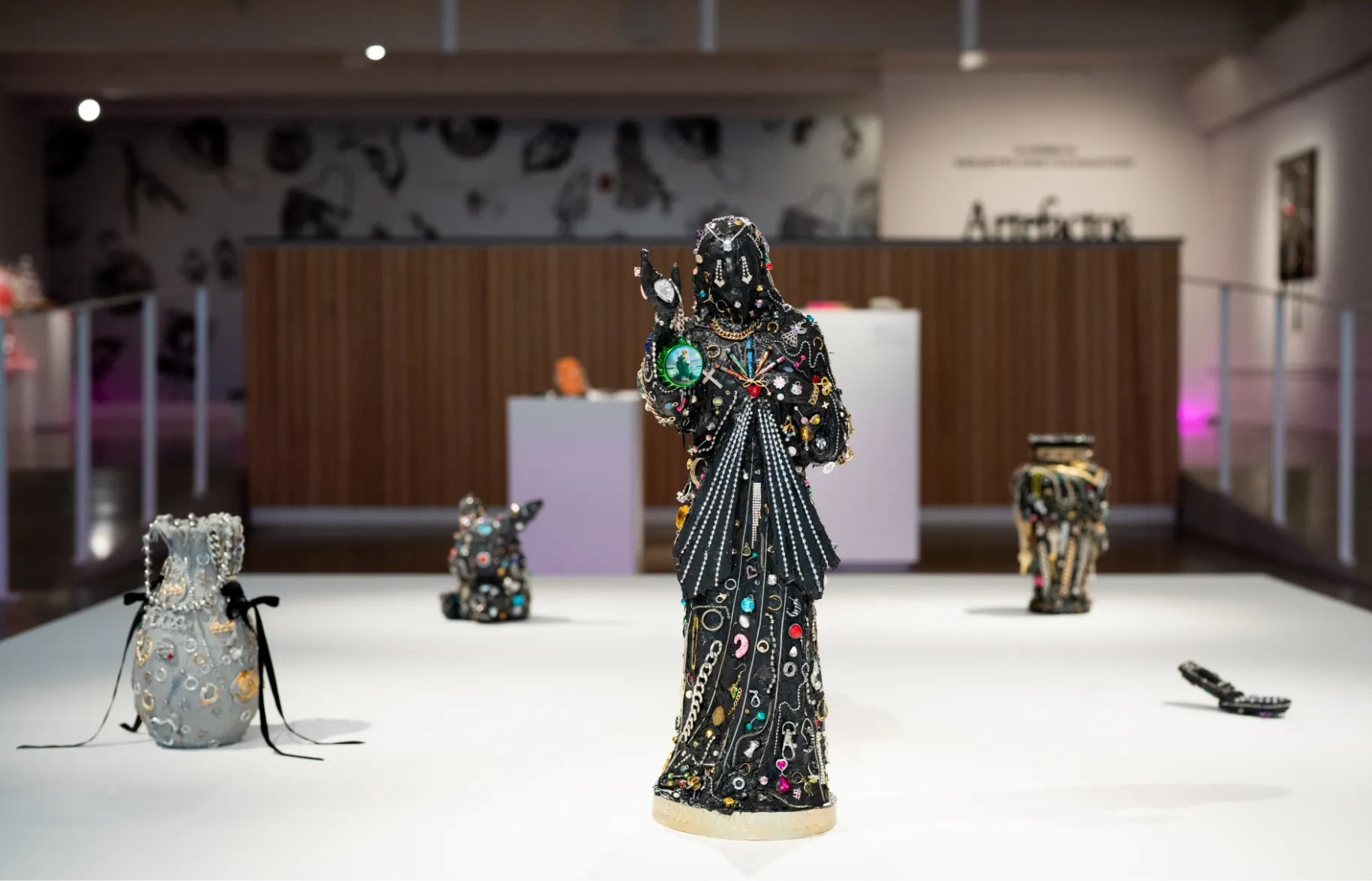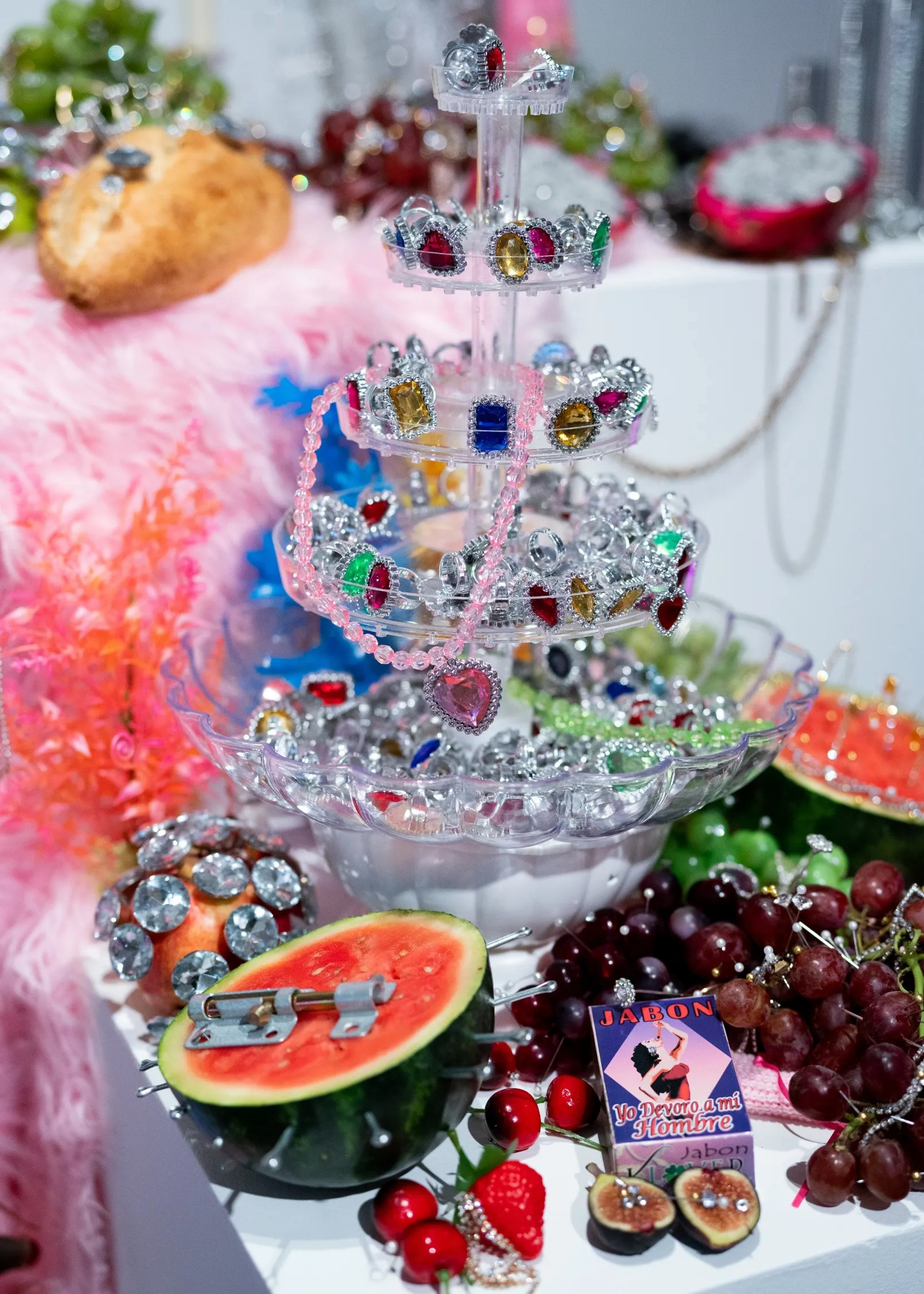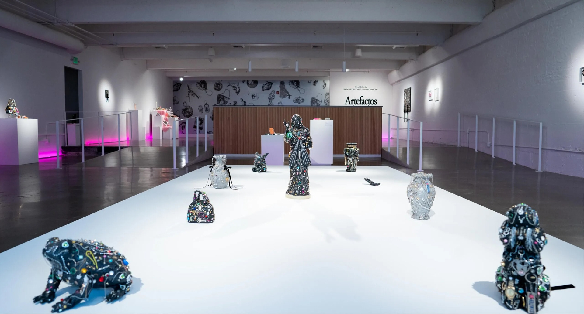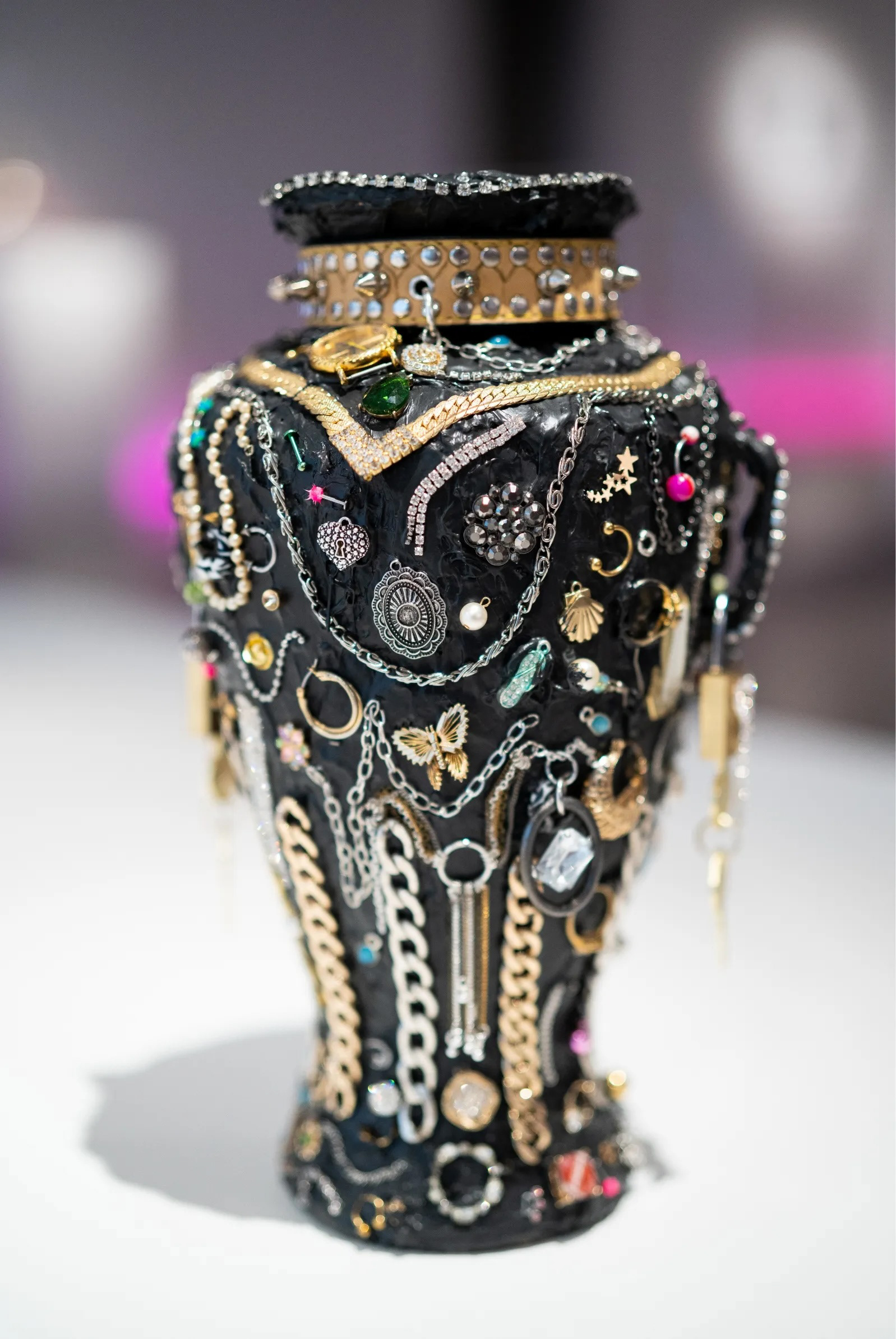 Artefactos Alterados is an anthropological study of found materials, reborn as timeless creations through the craft and curation of Georgina Treviño. For this show, I aimed to elevate ordinary artifacts from the ’90s, Y2K era, and Mexican culture through anthropological display. I used lighting, color, and textures within the gallery space to reflect the jewelry being exhibited back into the environment.